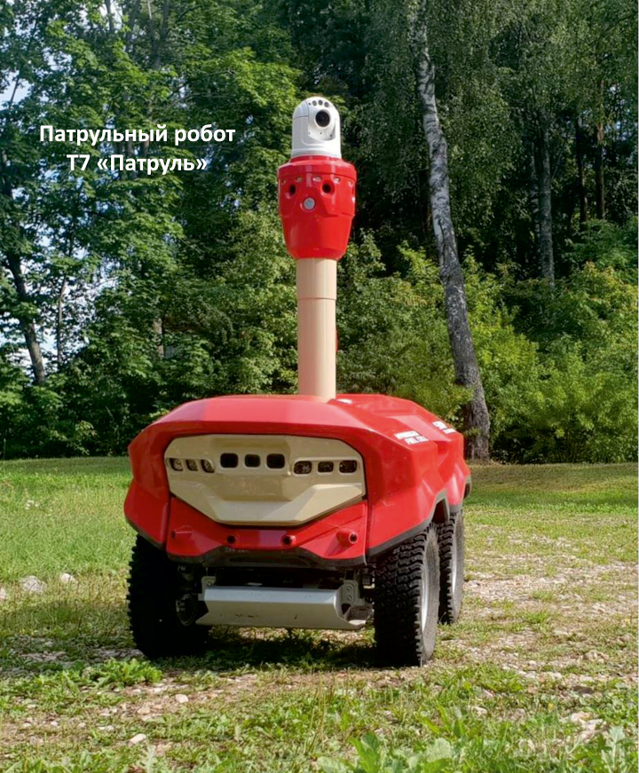 Мобильный робот T7 может использоваться как для охраны, так и для наблюдения за технологическими процессами и работой оборудования. В зависимости от условий эксплуатации, кроме шести камер, обеспечивающих непрерывное круговое наблюдение, и PTZ –камеры, может быть установлен тепловизор для обнаружения людей ночью. Робот способен автоматически двигаться по маршруту в полной темноте, объезжать препятствия, а по мере разряда аккумуляторов, вставать на автоматическую зарядку.
