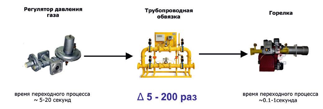 картинка 2. Разница в быстродействии регулятора давления и горелки может достигать 200 раз.